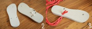 After the flip-flops are removed, we will prepare the leather cords in advance. Everyone can choose the color they like, and the small partner who likes to weave can weave the leather rope as shown in the figure and then start to wear the rope.